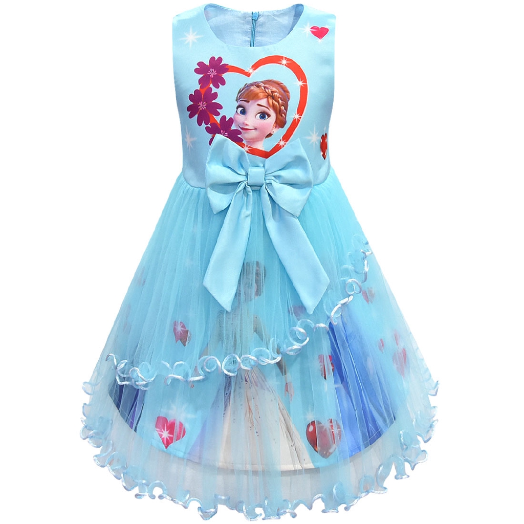 Frozen 2 Pattern Printed Princess Dress Birthday Party Dress For Kids 3 10 Years Old Shopee Philippines
